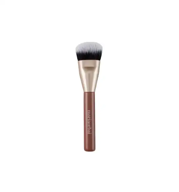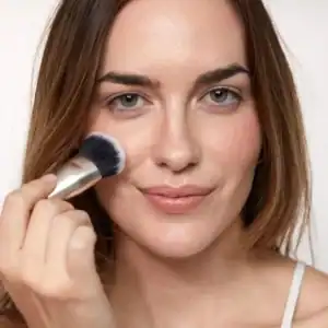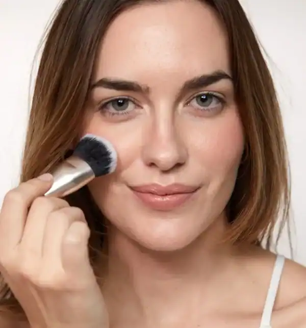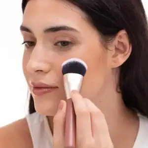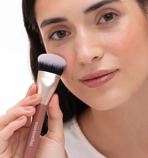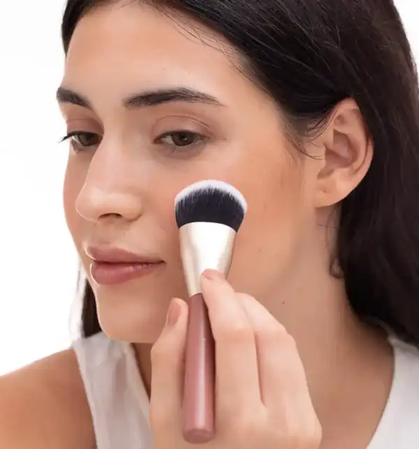 Con la brocha 11 aplicamos directamente la crema tostada sin necesidad de descargar. Con la parte central de la brocha depositamos el producto y con la parte más suelta difuminamos definiendo el contorno del rostro y aportando un toque de color de manera natural, sin olvidarnos de igualarlo también en el cuello.