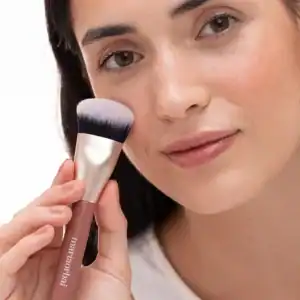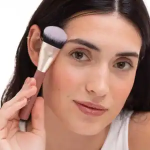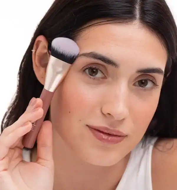 Con la brocha 52, aplicamos la base a toques, sin ejercer presión y difuminándola al completo para unificar el tono de la piel en rostro y cuello.